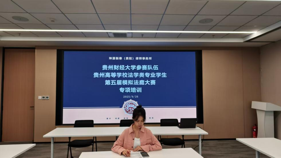 (开云手机在线 李佳佳 报道|摄影 罗一博)为切实提升学生专业实践能力,助力学校代表队在贵州省第五届高等学校法学类专业学生模拟法庭大赛中斩获佳绩,9月26日,开云手机在线专任教师罗一博带领参赛学生前往重庆坤源衡泰(贵阳)律师事务所开展赛前模拟专项培训。